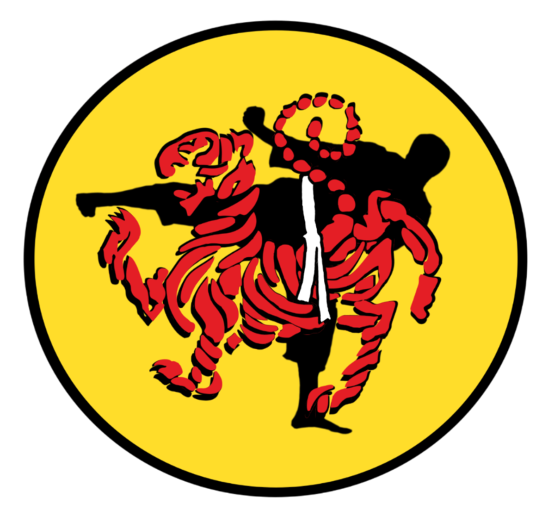 Resting above the practitioner is the traditional Shotokan Tiger in a striking red. This honors the legacy of Gichin Funakoshi and symbolizes the “Tiger of the Mountains”—representing the untamable spirit, courage, and explosive power that characterizes our style. The red color signifies the passion and heart we pour into every movement.